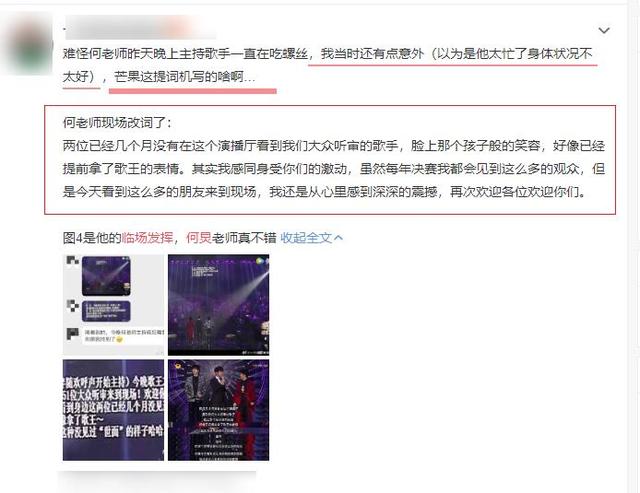 歌手 决赛嘴瓢翻车 何炅得体回应 不是失误 内情惹人心疼 歌王